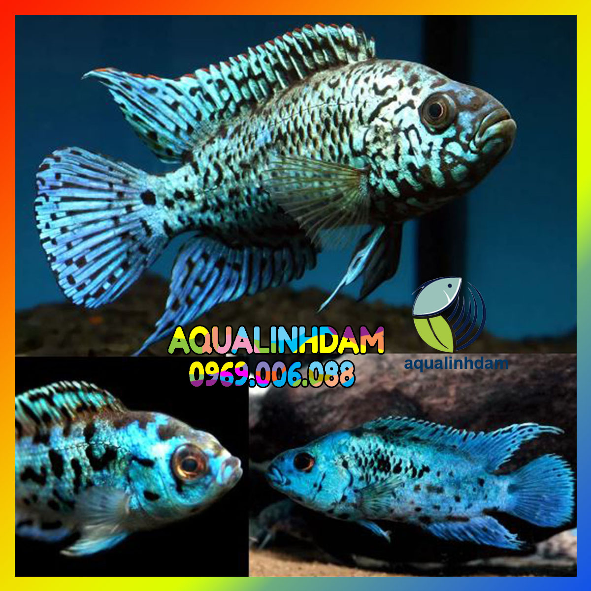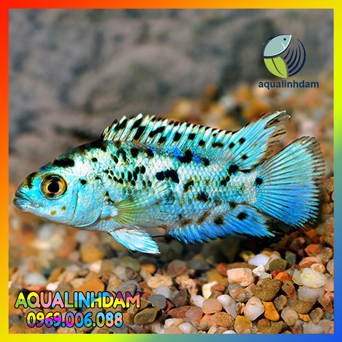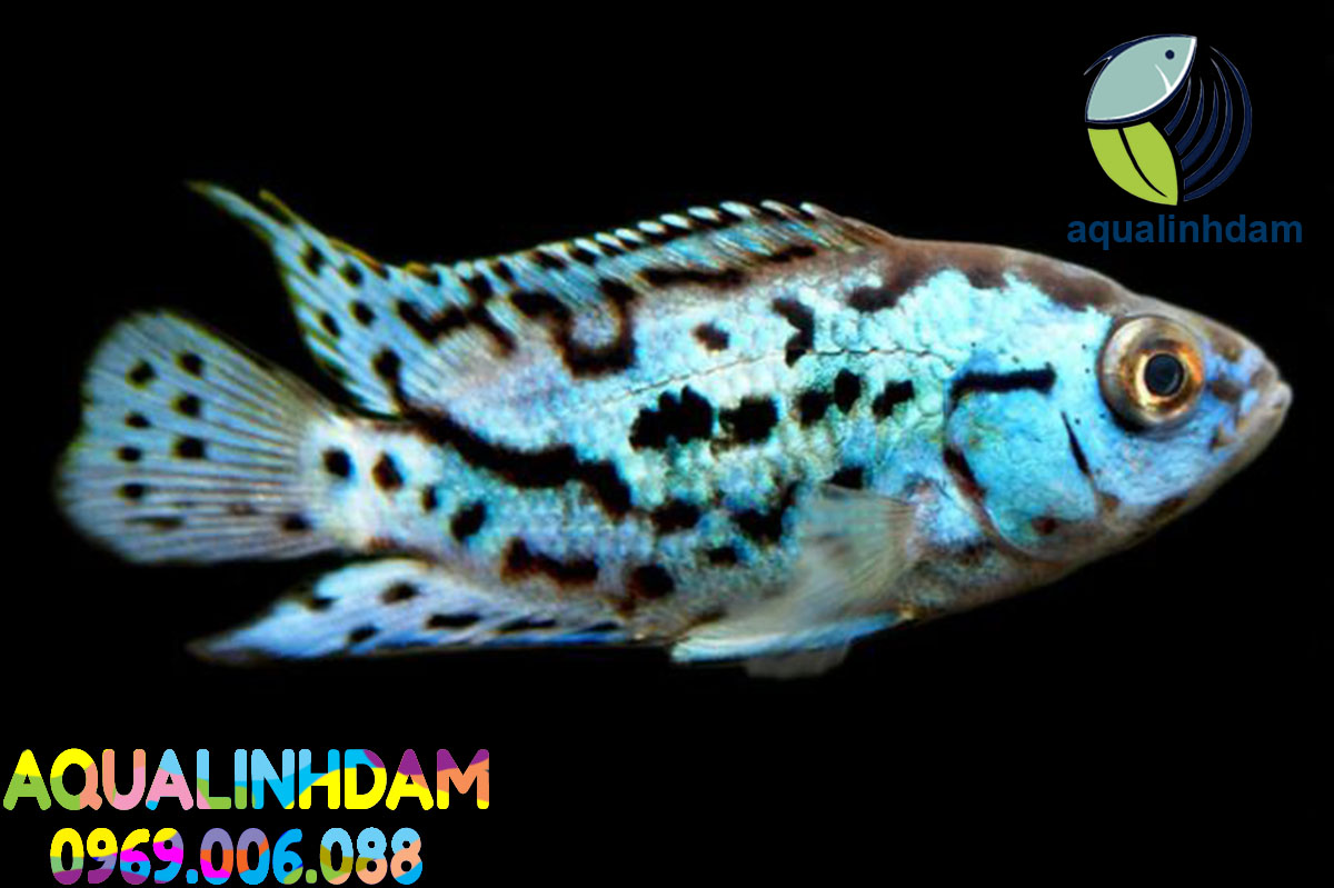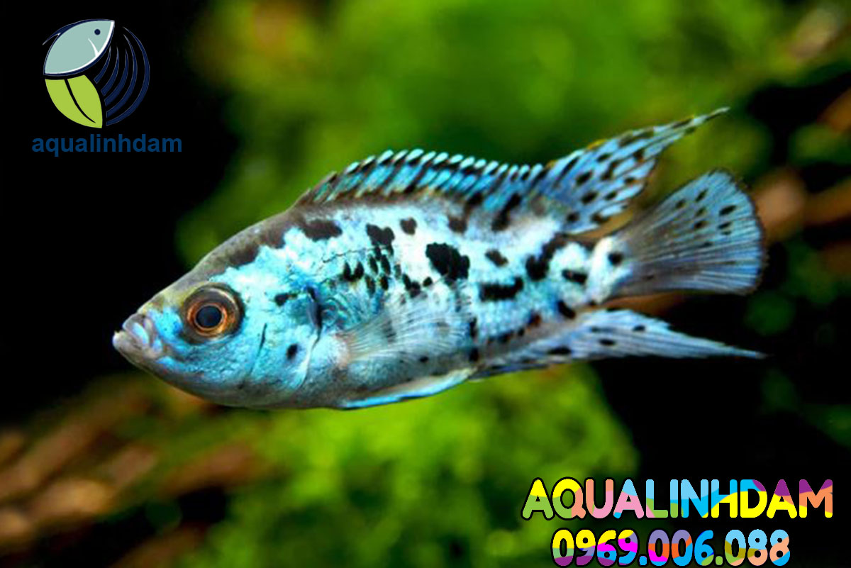 2. Đặc điểm:Cá Điện Quang (Electric Blue Jack Dempsey) thể hiện màu xanh dương điện tử lộng lẫy kết hợp với những hoa văn đen đặc trưng rải rác khắp cơ thể. Màu sắc này có thể thay đổi một chút tùy thuộc vào điều kiện ánh sáng, tạo nên một hiệu ứng ánh sáng như điện quang phát sáng.